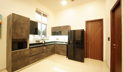 - A well-equipped dry kitchen is available for re-heating and consumption of food
